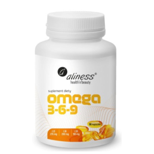 Aliness Omega 3-6-9 270/200/195 mg to wysokiej jakości suplement diety zawierający kompleks naturalnych kwasów tłuszczowych omega-3, omega-6 i omega-9, pochodzących z trzech czystych źródeł: oleju rybiego (z sardeli europejskiej), oleju lnianego oraz oleju słonecznikowego.
